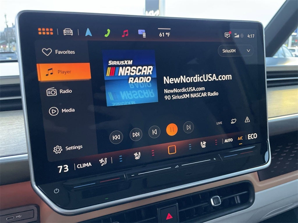- Radio: Discover Pro Max w/Touchscreen Navigation -inc: 12.9 inch touchscreen multi-function center display w/backlit sliders, FM/HD Radio, WMA/MP3/FLAC media player w/voice control, Harman Kardon premium sound system w/13 speakers, subwoofer and amplifier, Bluetooth® connectivity (for compatible devices), SiriusXM w/360L (w/3-month free trial subscription; must accept SiriusXM terms), App-Connect smartphone integration (w/Apple CarPlay, Android Auto and MirrorLink) via USB, wireless App-Connect smartphone integration (for compatible devices) w/multi-phone pairing capability, capability for in-vehicle 4G LTE enabled Wi-Fi (cellular data plan required; includes limited trial), capability for VW Car-Net services (capabilities for certain services vary; requires enrollment or subscription) and Qi wireless inductive charger (for compatible mobile phones and accessories) in front row